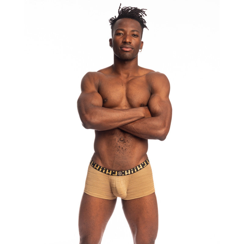 Black and gold two-tone elastic immediately signs this luxury men's boxer's visual identity. Hipster Push River Gold reinvents men's underwear with graphic elegance where push-up comfort and architectural aesthetic harmoniously combine.